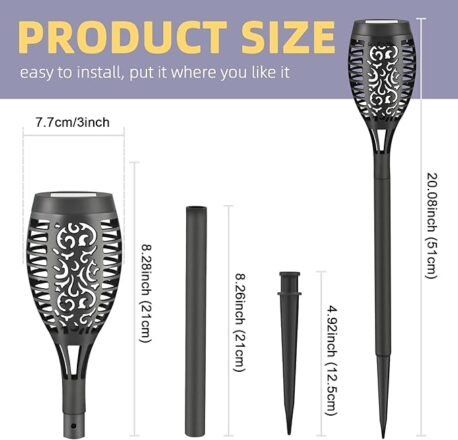 4 Pack Led Solar Torch Light with Flickering Flame Outdoor Waterproof Halloween Decorations, DS-169