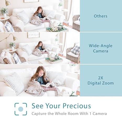 - 【See Your Precious】It allows you to clearly see your baby enjoying sweet dreams, or playing in the room whether during the day or at night. The camera features are: high resolution, wide-angle lens, auto night vision, and 2X digital zoom functions.