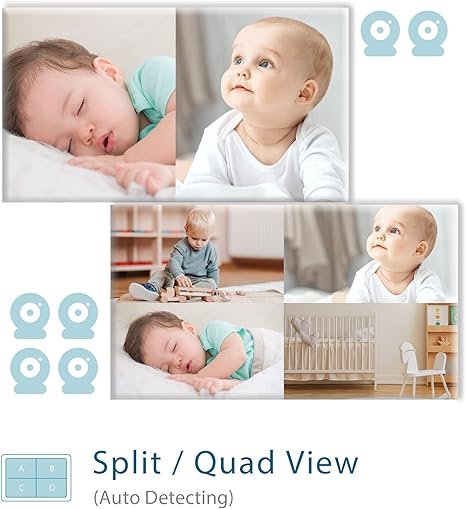 - 【From Infant to Toddler】Your baby becomes more and more curious about the world as he/she turns into a toddler, and will begin his/her little adventures around the house. So, it’s time to have an additional camera! This baby monitor supports up to 2 cameras, making it the best option for monitoring different rooms. Use “Screen Split” to view 2 monitors simultaneously, and choose one camera with audio. Also suitable for a growing family!